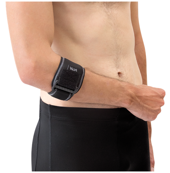 Kατασκευή από «neoprene» πάχους 3mm. Το πίεστρο χρησιμεύει για την απαιτούμενη δυναμική συμπίεση στον έσω ή έξω κόνδυλο. Η αυτοκόλλητη δέστρα σταθεροποιεί τα μαλακά μόρια και τους ιστούς.