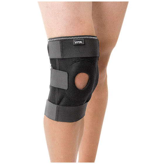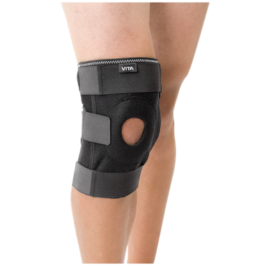 Κατασκευή από ανθεκτικό και αεριζόμενο neoprene «Airtex». Τρεις δεστρες αυτοκόλλητες με «Velcro» σε σημεία επιλογής, για την βαθμιαία συμπίεση των μαλακών μορίων και των ιστών. Διαθέτει μαξιλάρι αποφόρτισης της επιγονατίδας.