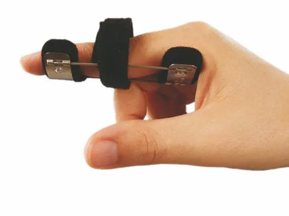 - Διαθέτει ρυθμιζόμενη μεταλλική αγκράφα εφαρμογής στην Mεσοφαλάγγεια ‘Αρθρωση του Δακτύλου.